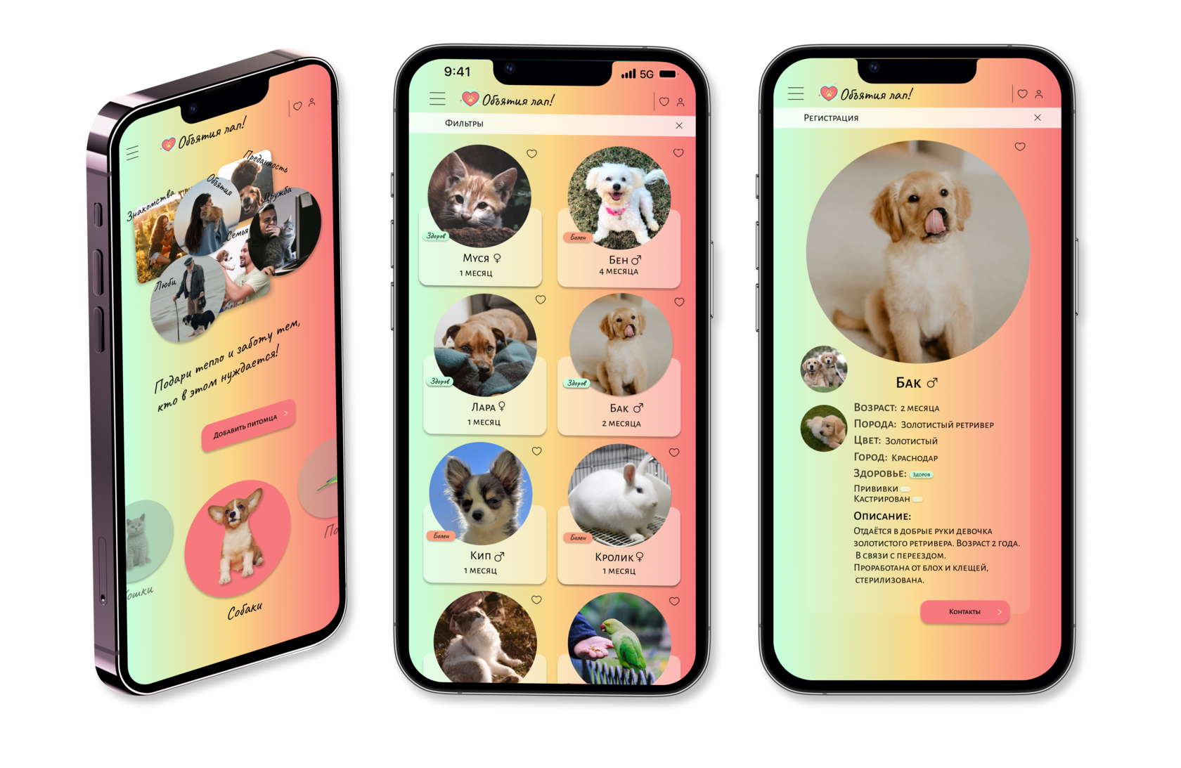 Дизайн сайта для людей, которые хотят взять питомца в добрые руки.
